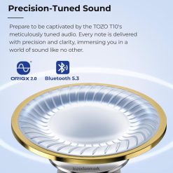 tozo t10 er den bedst sælgende af vores tws øretelefoner til dato, og den har fremragende lyd tunet af tozo origx akustisk teknologi, ipx8 vandtæthed, en langvarig batterilevetid på 45 timer og trådløs opladning, der tilbyder kompromisløs brugsoplevelse til en konkurrencedygtig pris.