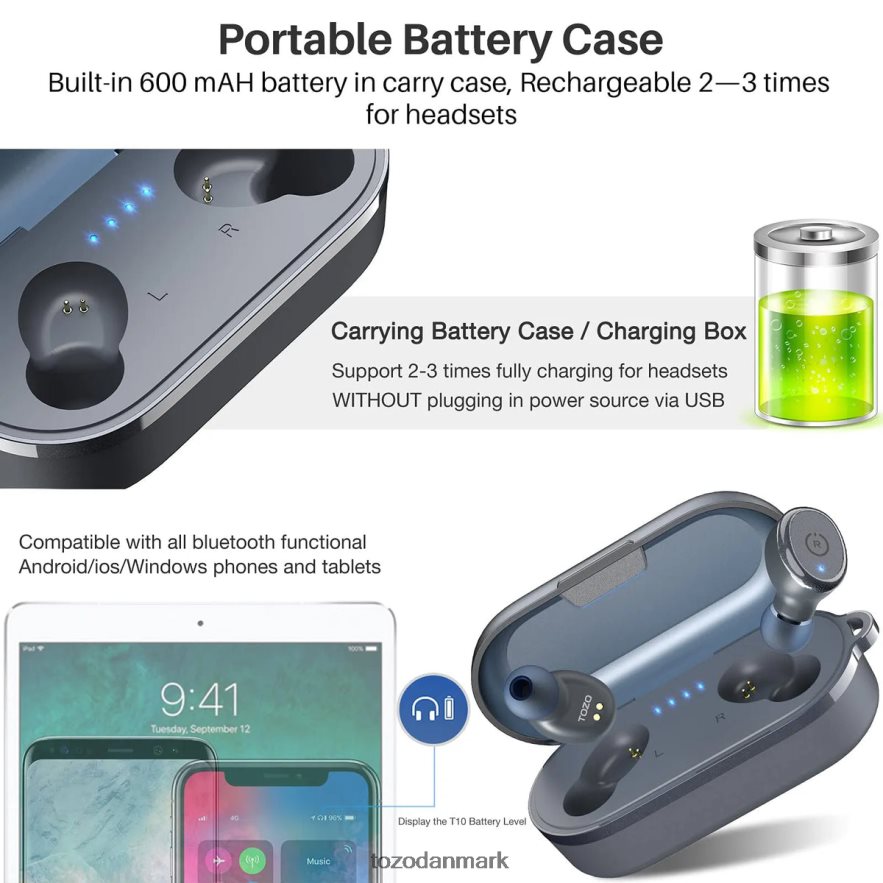 TOZO hovedtelefoner grå t10 2T82HZ24