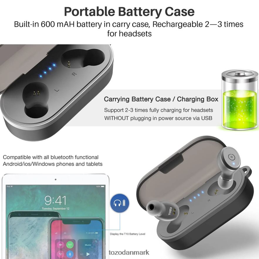 TOZO hovedtelefoner kaki t10 2T82HZ26