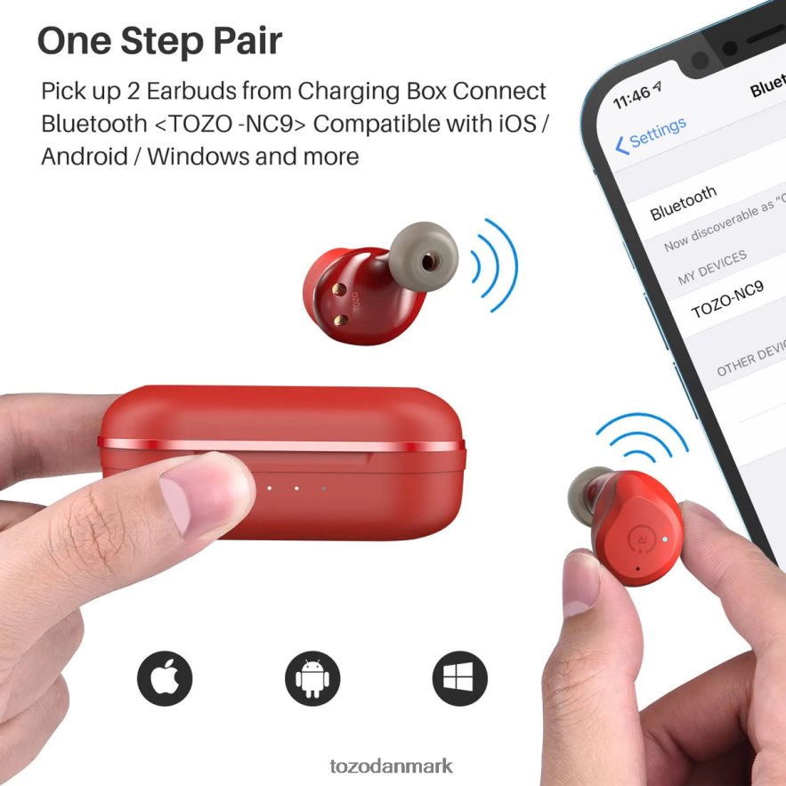TOZO hovedtelefoner rød nc9 2T82HZ11
