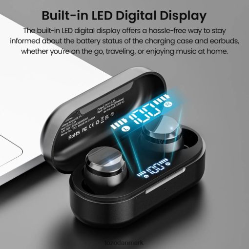nyd friheden til at bevæge dig, træne og gå din dag uden bekymringer, da tozo-tonale prikker altid er sikkert på plads, mens de giver en følelse af ultimativ lethed , med LED digitalt display, 10 mm dynamiske drivere, 55 timers batterilevetid, ipx8 vandtæthed, enc call noise cancellation.
